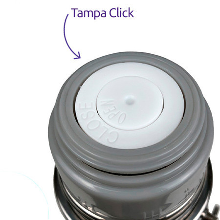 A Garrafa Click com Alça é feita em Inox, sua capacidade é de 500 ml.