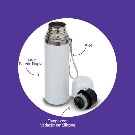 Garrafa térmica INOX 500ml com alça – estampa somente frontal